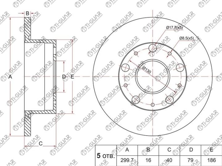 Диск тормозной /задний /TI-GUAR для FIAT DUCATO 2006, CITROEN JUMPER 2006-, PEUGEOT BOXER 2006-; 300/16мм; TG-424941; (08A45910 ST-424941 DF4750) 1607880680 4249K6 51749555
