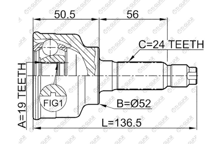 ШРУС наружный /передний левый /правый /TI-GUAR для Mazda Demio Ford Festiva; 19*52*24; TG-6814; (MA-E014A TG-6814Z44 0510-014A44) MA014 MAE014A 0510014A44